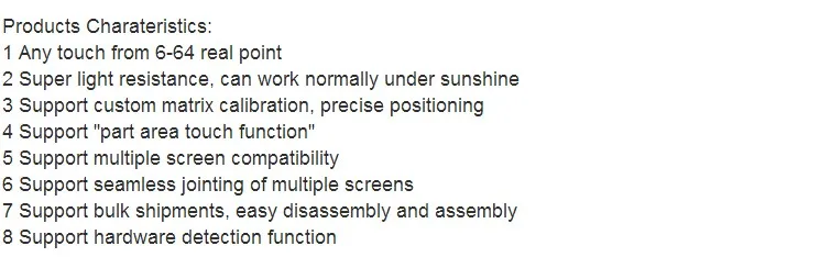 | Products Status: | Stock; | Type: | ir touch,resistive touch or capacitive touch are optional; |