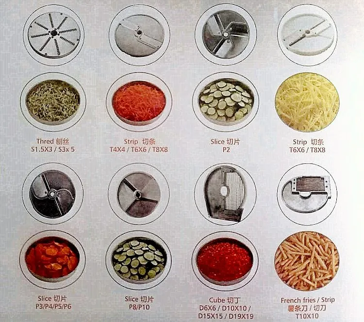 6.Discs and blades for all kinds of processing, like slicing, grating, shredding, chips and cubes.