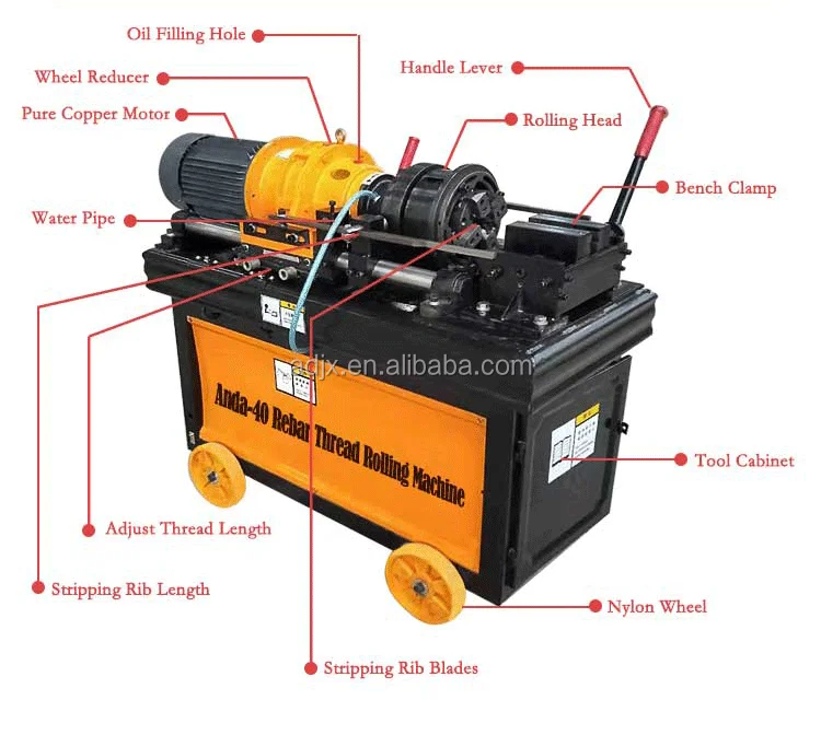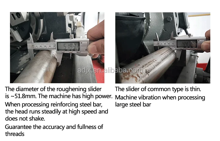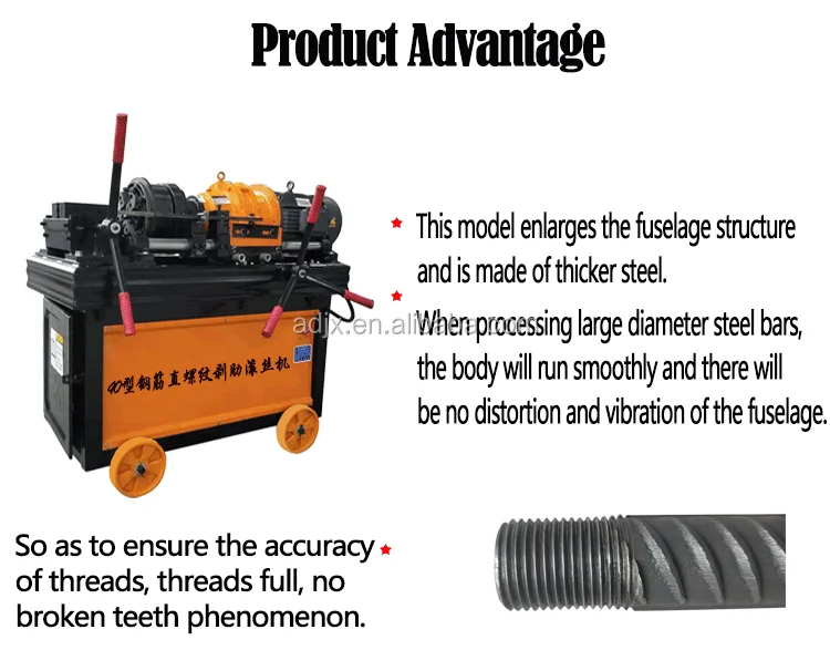 2.The fuselage is enlarged, the fuselage structure is strong, and the fuselage will not twist and shake when processing large diameter reinforcing bars, thus ensuring the accuracy of the threads, the processed threads are full, and the phenomenon of broken teeth will not occur.