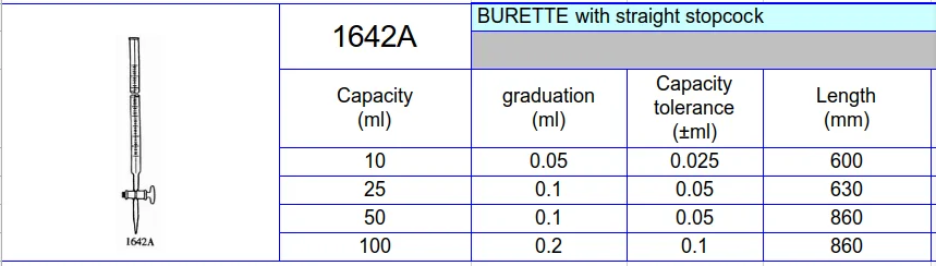 | Model Number: | 1642A; | Supply Ability: | 5000 Piece/Pieces per Week for glass burette; |