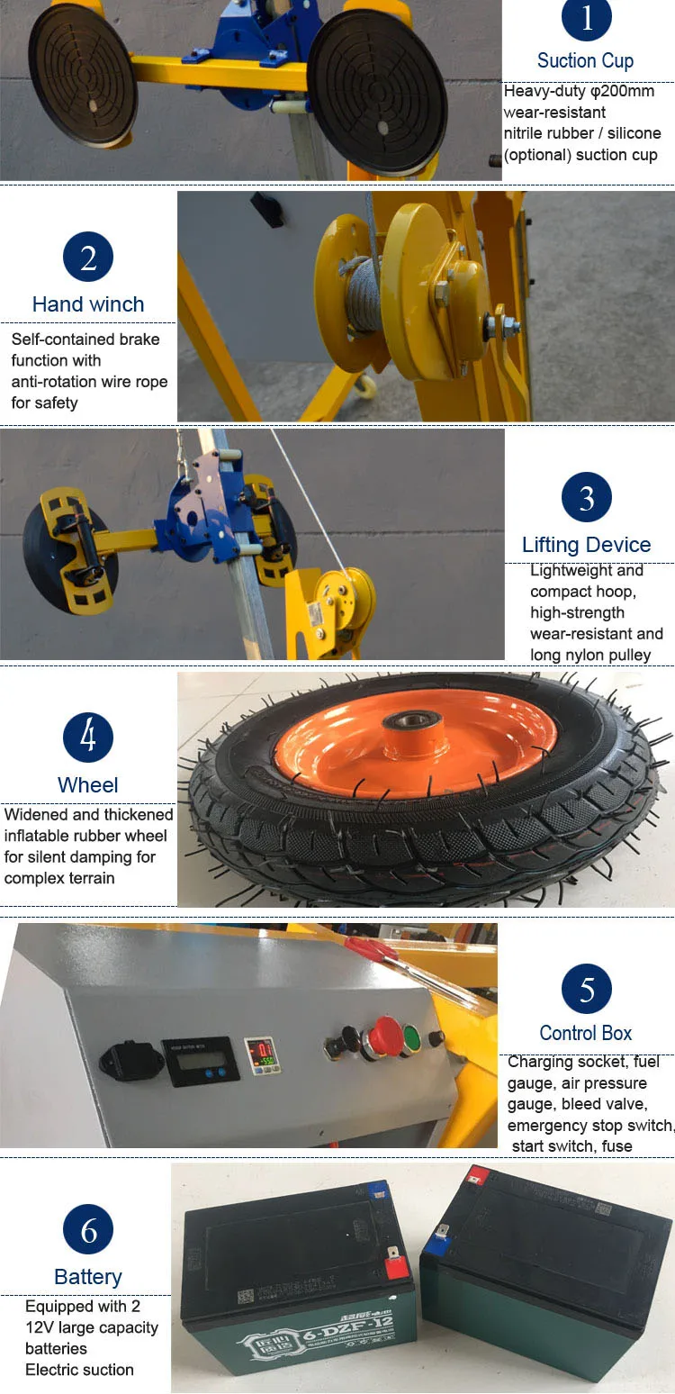 | Power System: | Battery; | Product Name: | 300kg vacuum panel lifter vacuum glass lifter glass manual lifting; |