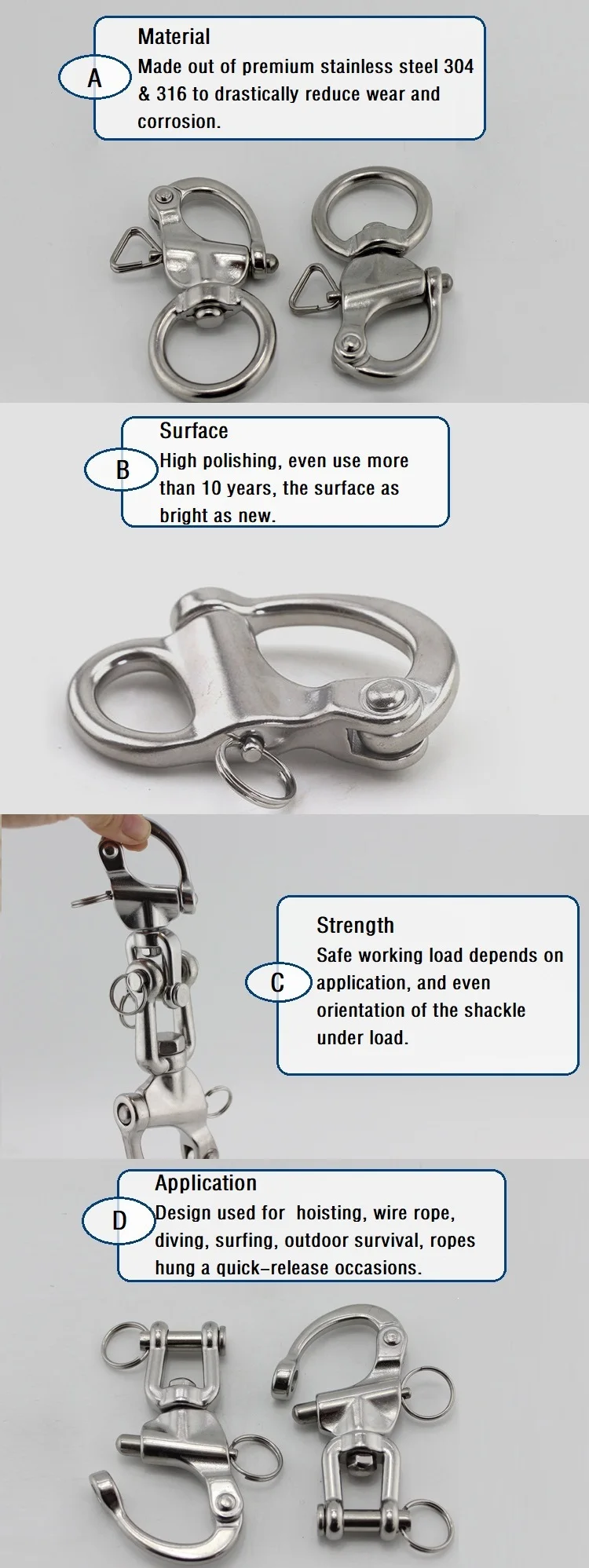 | Name | Stainless Steel Snap Shackle |