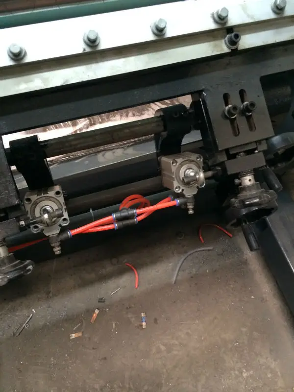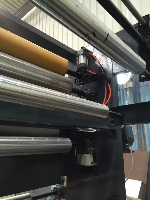 2. Shaftless printing roller fixing System: adopt pneumatic cylinder fixing style to drive the printing roller core, and transverse adjustment through screw.