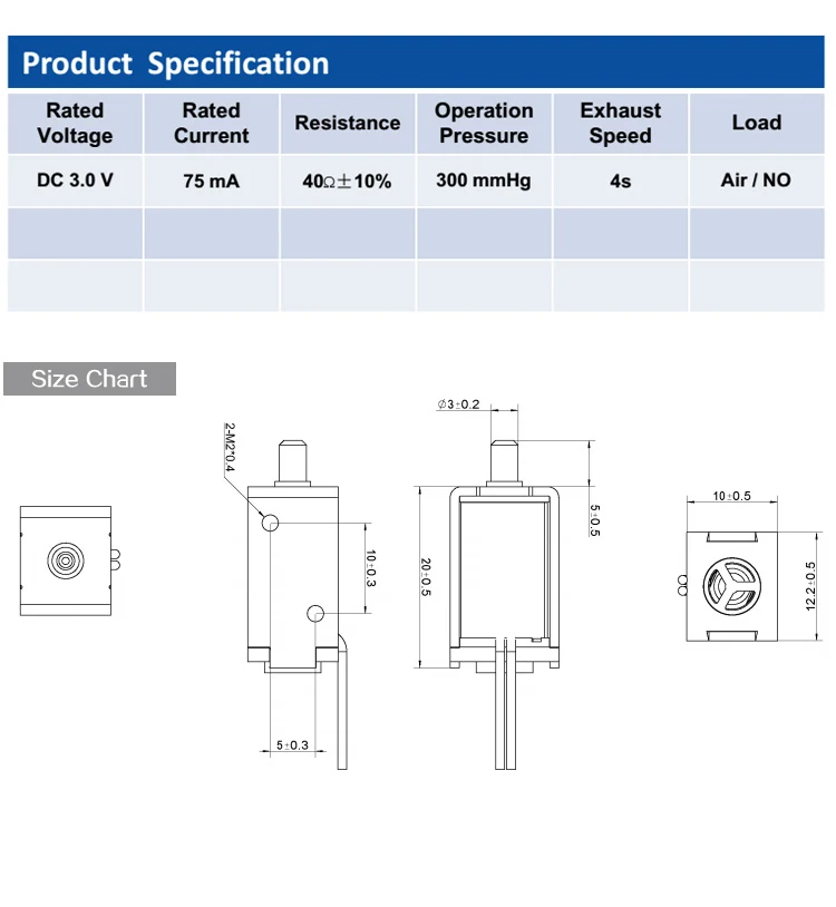 We're a professional manufacturer of electric parts,including design,production and selling series of mini pumps(air pump,vacuum pump,water pump),Solenoid Valve.The products widely applied in home appliances and medical/health care equipments,e.g.:Coffee machine,Juice machine,Aquarium,Water dispenser,electric blood pressure meter/moniter,massage etc.,
