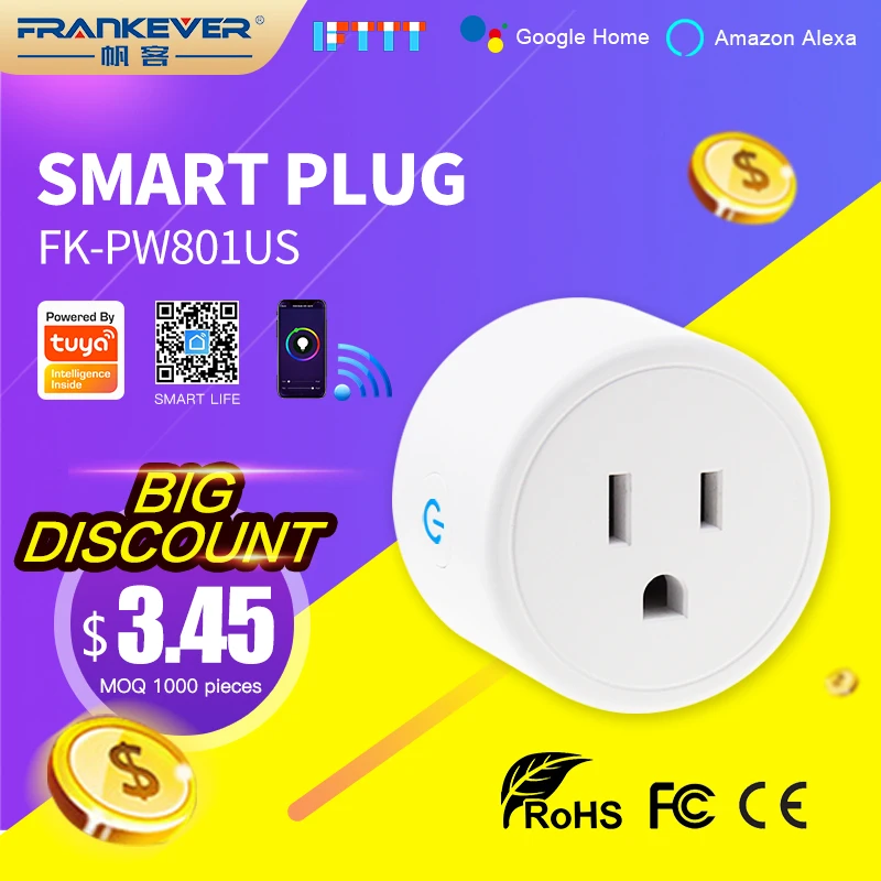 | Packaging Detail: | Standard package for "Frankever Wifi Smart Plug US standard Socket Support Alexa Google Home", each one is packaged in a box.; | Color: | White; |