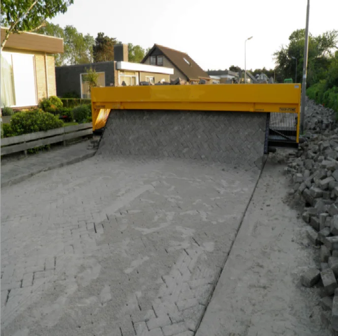 The principle of the paving machine lies in the carefully designed gravity foundation system. As long as the bricks are stacked on the brick bucket, the paved road will be paved into a complete brick road with a width of up to 6 meters wide, and the turning operation can be carried out according to the road conditions. Very convenient and convenient. The department's paving machine equipment has high efficiency, low energy consumption and meets national standards.
