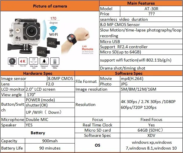 | Underwater: | 30M Waterproof; | Supply Ability: | 5000 Piece/Pieces per Week video camera 4k; |