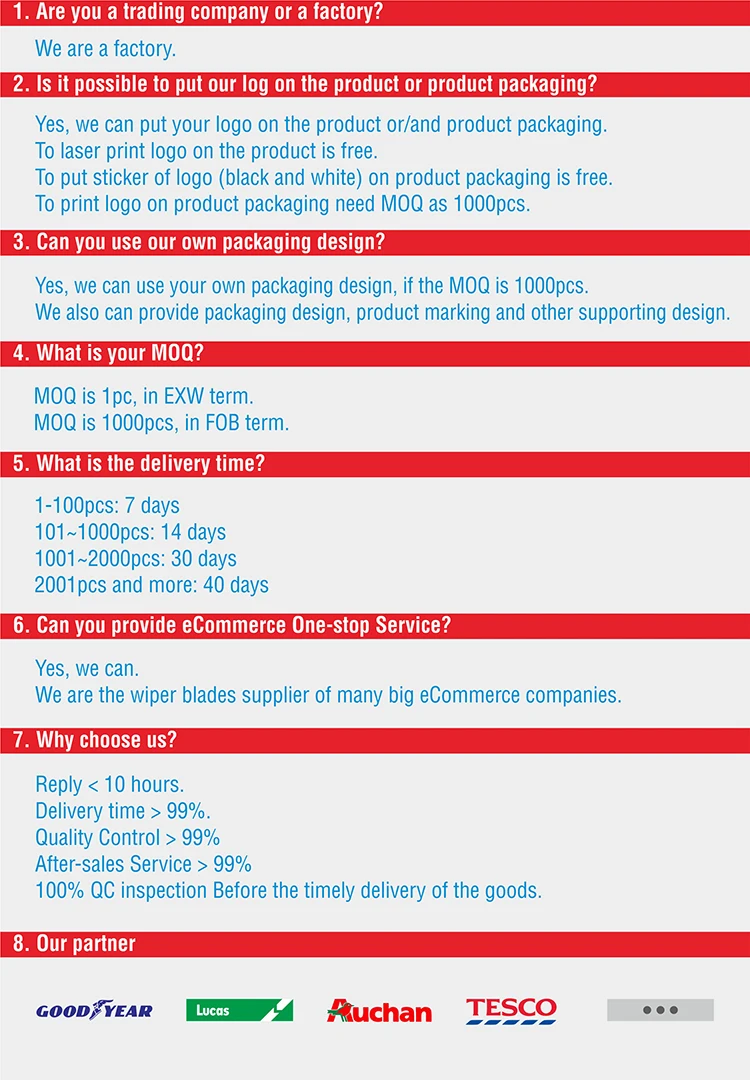 | Payment Terms: | L/C,D/A,D/P,T/T,Western Union,MoneyGram,Alipay; | Type: | Wiper Blade; |