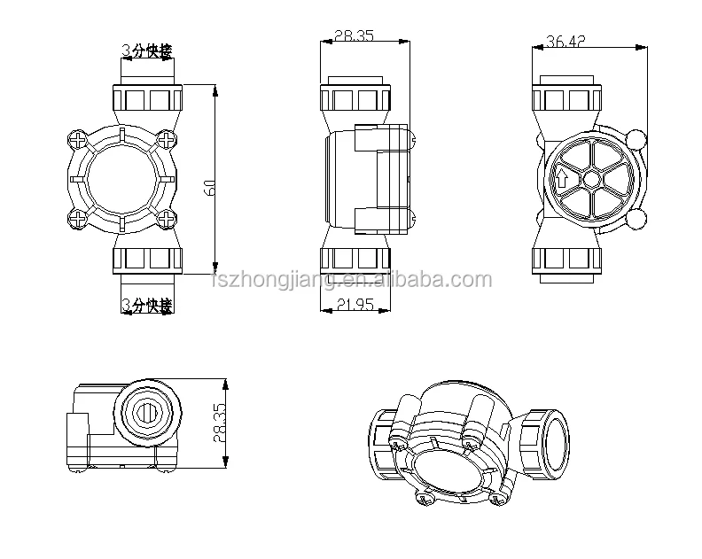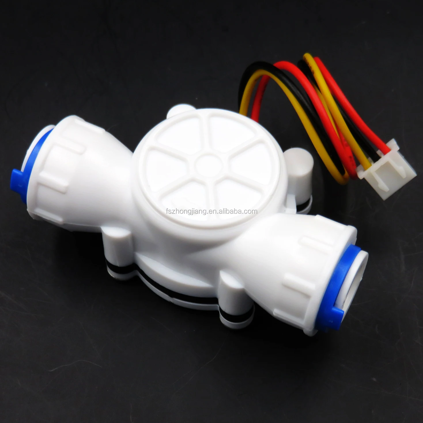 Water flow sensor mainly consists of plastic valve body, water flow rotor assembly and hall sensor.