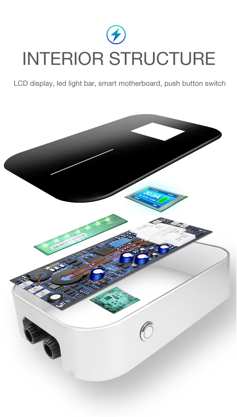 -Containing the intelligent chip. It can automatically repair minor charging problems while charging. When a fault occurs, the lights will blink in different ways to indicate different problems.