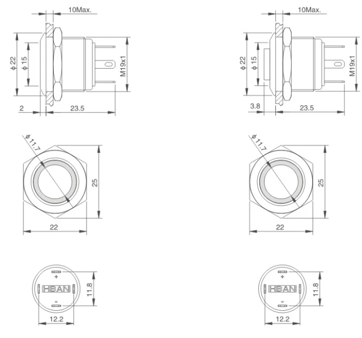 | Mounting hole size: | 19mm | 19mm | 19mm |
