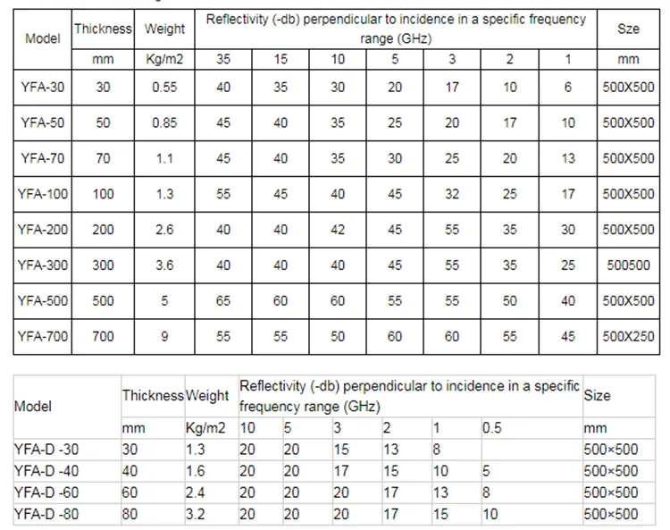 | Product name: | microwave absorber; | Model Number: | YFA-500; |