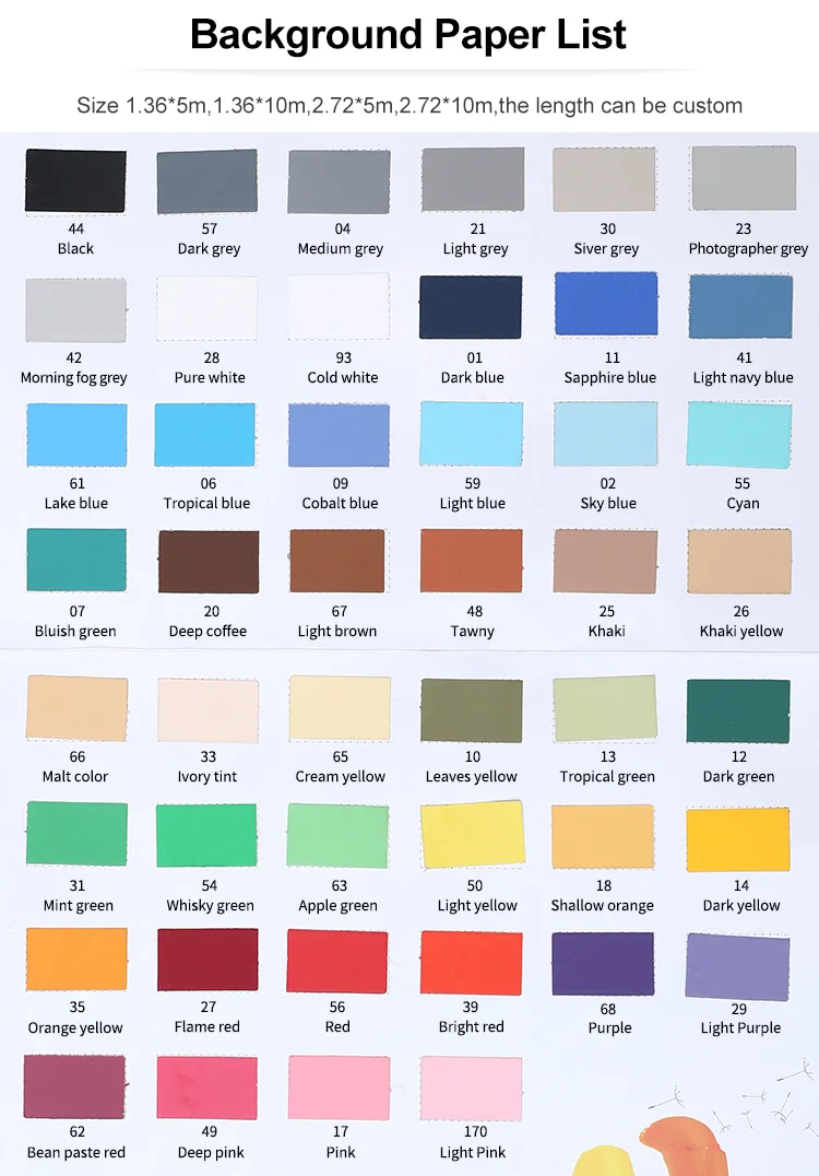 | Style: | Solid color, seamles; | Usage: | Films and television shooting, poster, photo shooting; |