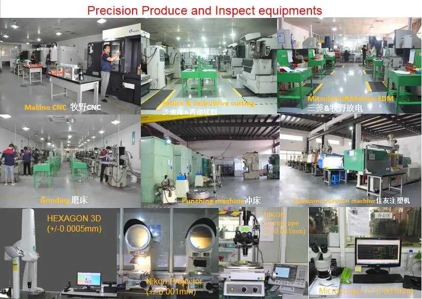 | Processing equipment | CNC machine,Automotic lathe machine,EDM machine,Stamping lathes,Wire-cutting machine,Milling/Grinding machine,Punching/Drilling machine,Ultrasonec cleaning machine,injection machine,etc. |