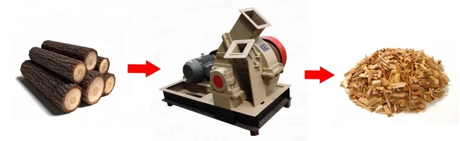 Wood chipper is mainly used to crush wood logs or wood timber,plywood,wood branches,furniture waste into small chips,the thickness of chips is 3mm-5mm,length and width is about 15-35mm.By adjusting knives gap,outlet chips dimension will be adjusted.