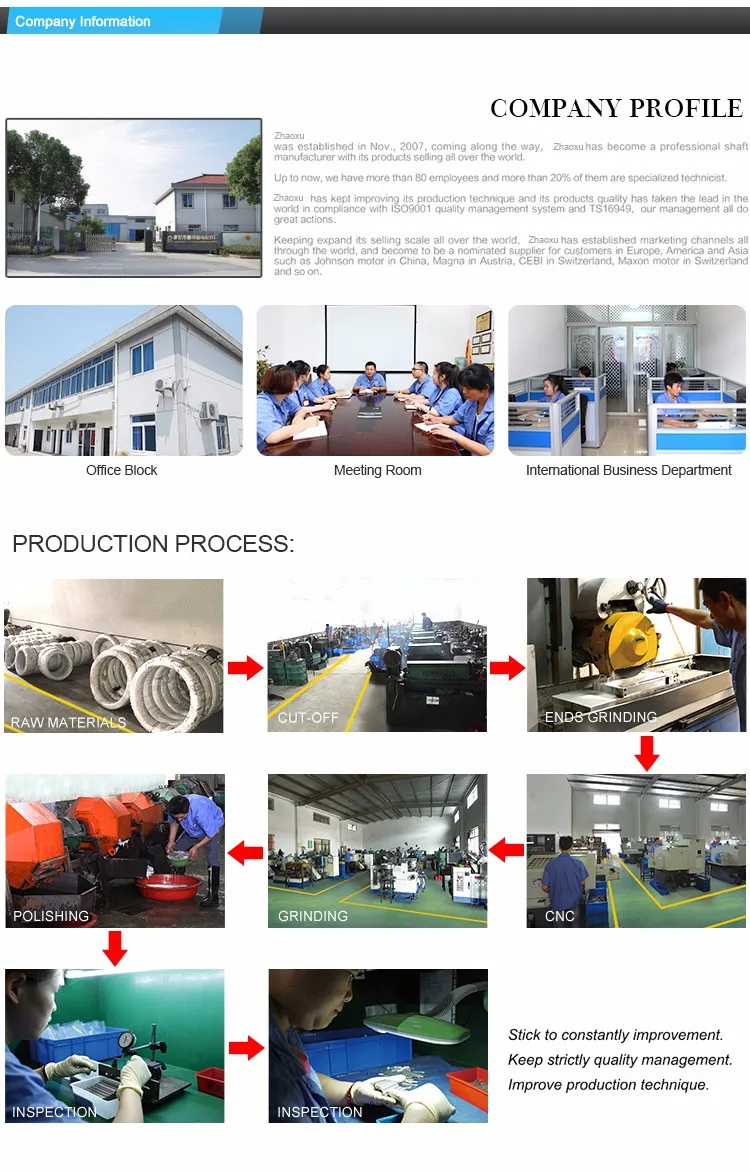 Fenghua Zhaoxu Electrical & Mechanical Accessory Factory is a professional manufacturer and exporter in precision shaft, micro shaft, motor shaft, stainless steel shaft, non-standard shaft and hardware parts.