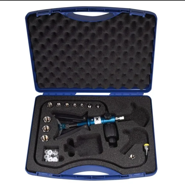Depending on the model a matching pressure hose is part of the basic configuration of the Basic version of the test pump. The hydraulic hoses are fitted with a self-sealing quick coupling. Inch, conical or metric adapters for all commonly used connection threads are available in the Solid version. A matching seal kit is also included with the pump. All of the equipment is held in a carrying case with a foam-rubber insert.