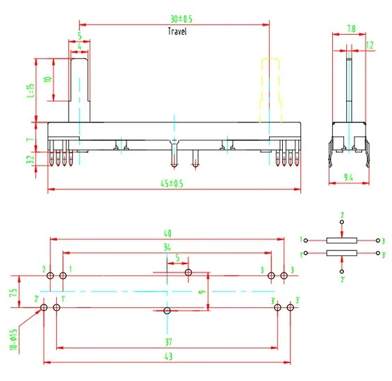 | 45mm 60mm travel slide potentiometer |