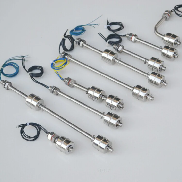 The level sensor is mainly composed of a reed switch and a float, which contains magnetic material, one or more reed switches in a closed non-permeable metal pipe or plastic tube, and then passes the conduit through one or more With a magnetic material of the float, and the use of fixed double-ring control float and reed switch in the relevant position, the float with the liquid rise or fall, the use of the ball near the beginning of the magnetic spring contacts, For level control or indication (when the float is close to the reed switch is turned on; off when the switch is off).