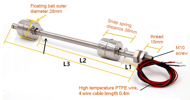 | Contact impedance: | <100m; | Product name: | stainless water fuel tank sensor float switch oil level Switch float; |