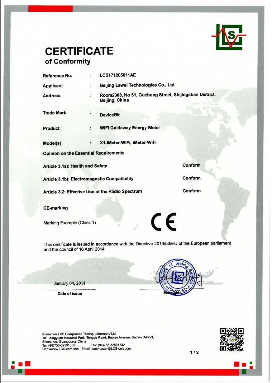 | 1 | iMeter-WiFi | 1 | WiFi module embedded |