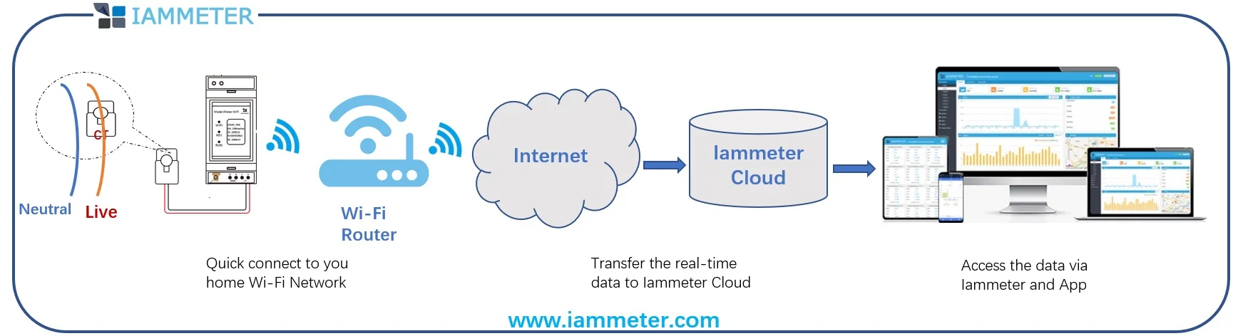 3. View your data via Iammeter platform (https://www.iammeter.com) or mobile Android/IOS app.