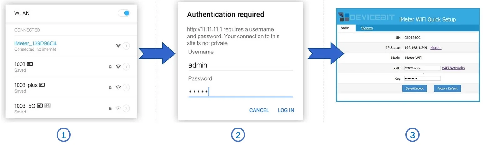 1. Quick Wi-Fi setup to connect the iMeter-WiFi to your home Wi-Fi network;
