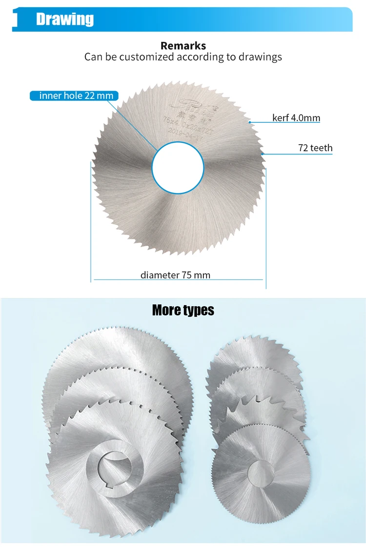 | Product Name: | HSS Saw Blade; | Size: | 75x4.0x22x72T; |