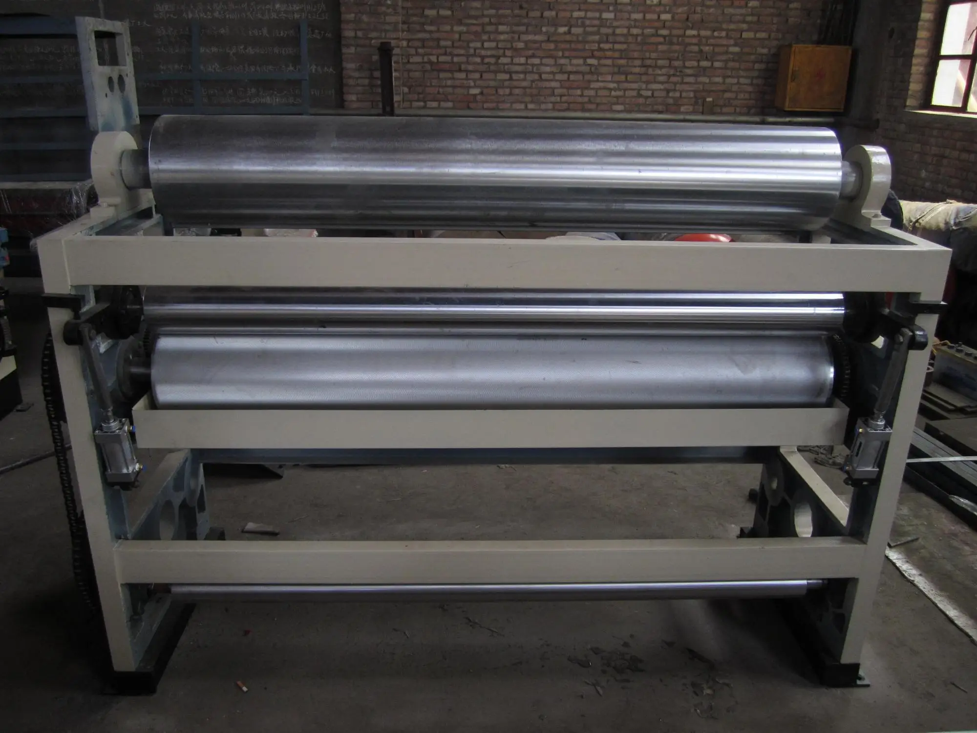 5.Gluing wall plate armed structure, pneumatic controls, glue roller 25 line pits dot the surface processing ,after the hard chromium plating process, squeegee roller surface hard chromium plating grinding.