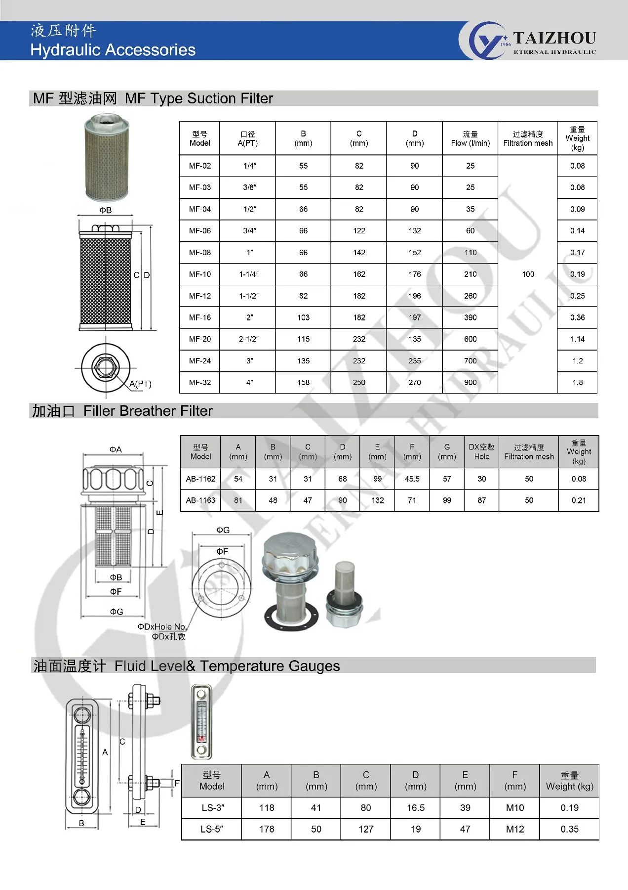 Ball Valve, Kc Tube Check Valve, Oil Filter, Suction Filter, Filler Breather Filter, Pump Mounting Bracket, Motor Coupling, Fluid Level&Temperature Gauge, Pressure Gauge, Pressure Gauge Switch, Oil Tank, Hydraulic Hose...