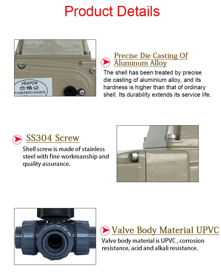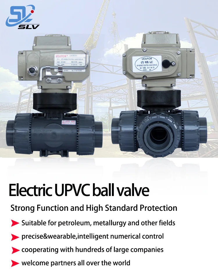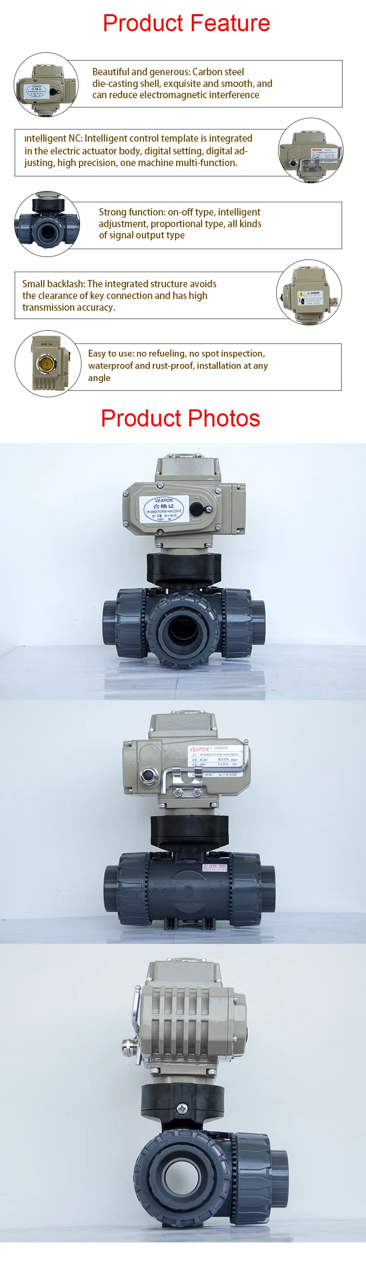 1" 2" 3" 4" PVC 3 way Ball Valve With Electric Actuator
