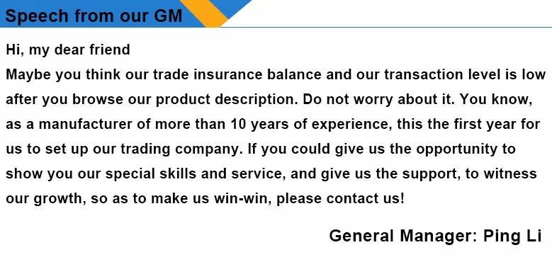 Nearby Tianjin port and we can delivery fast.Once you have any question,we will give you reply on time.
