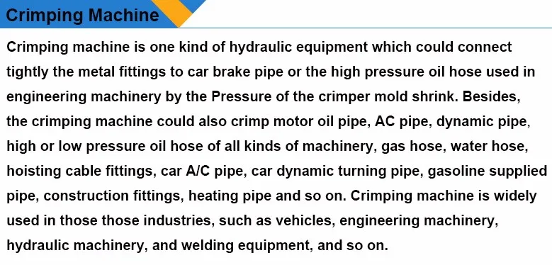 We are professional hydraulic hose pressing and crimping machine manufacturer and have benn engaged in this field for many years.