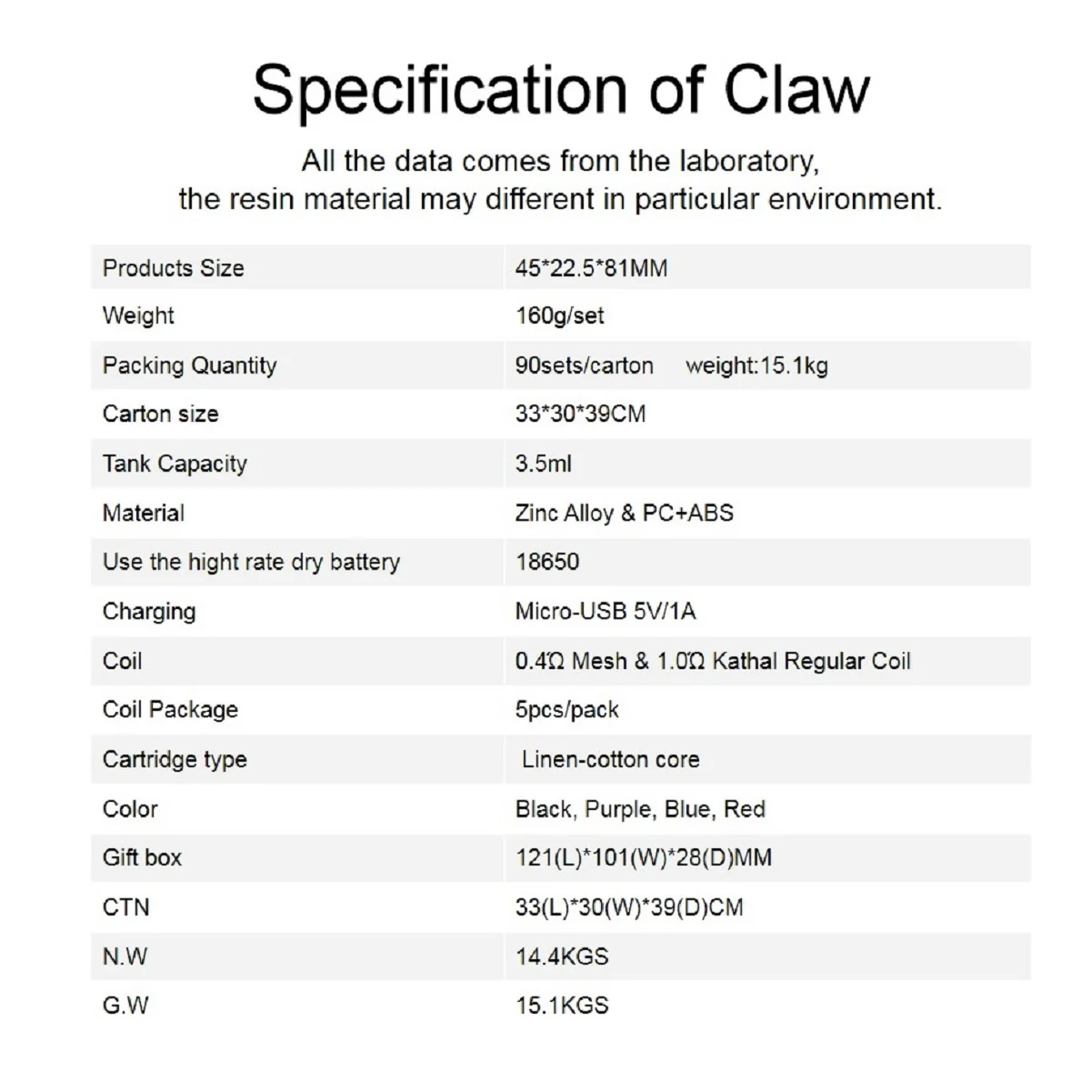 | Atomization coil resistance | 0.4ΩMesh & 1.0Ω Kanthal resistance |