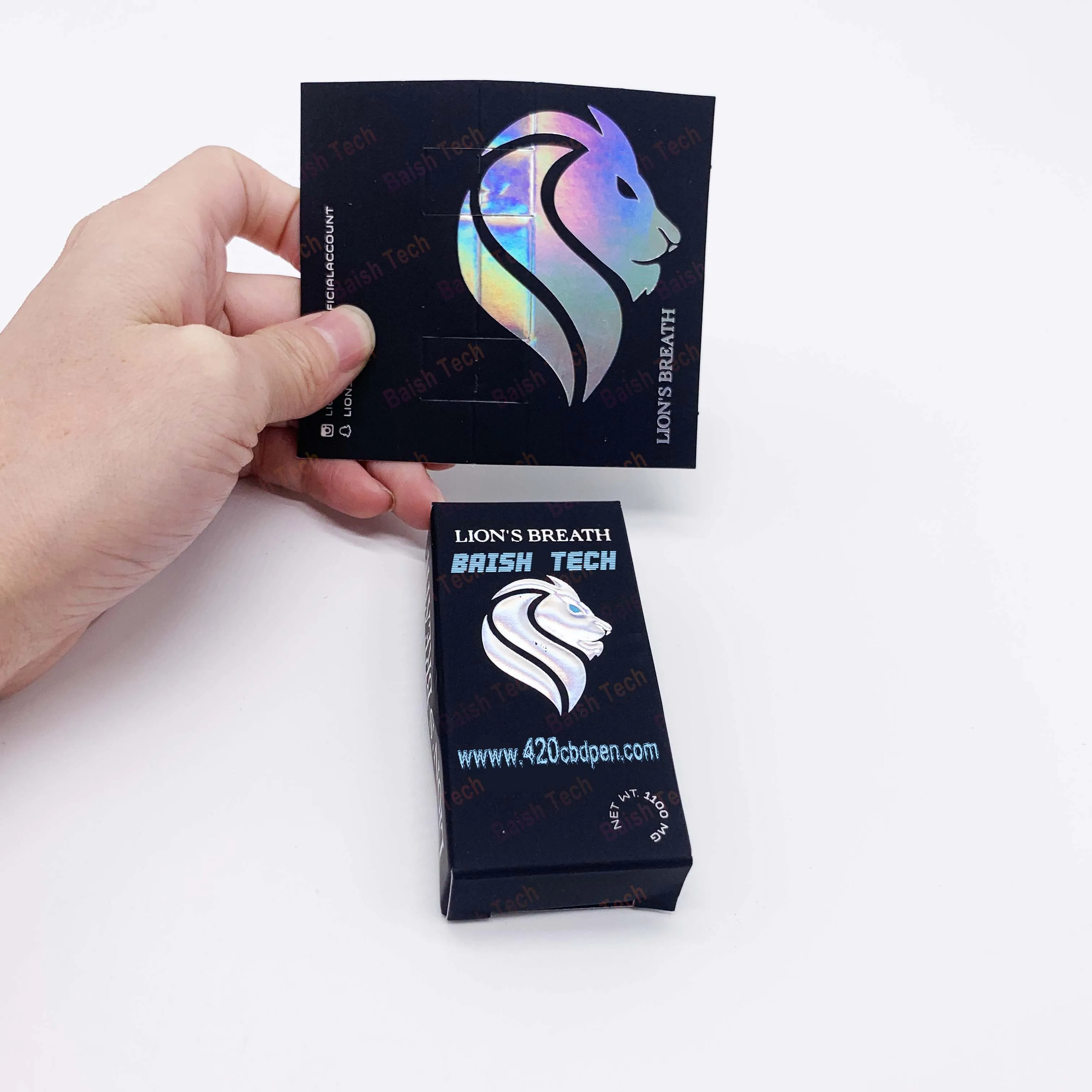 2020 Custom made new design small vape pen cartridge LIONS breath Packaging Box with sliver foil from baish tech