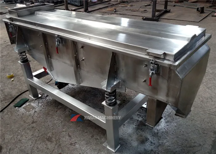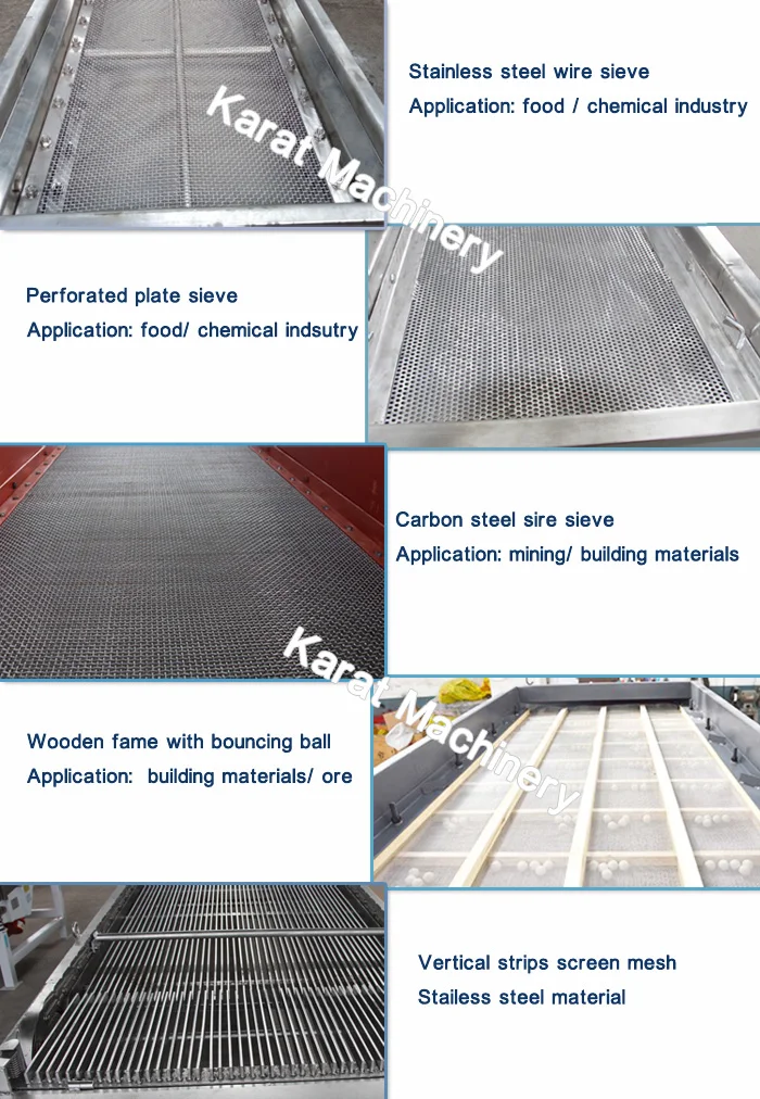 Small vibration mechanical shaker linear vibrating screen sieve is widely used in food industry, mining industry, chemical industry, medical industry, waste treatment, etc. Main functions are removing impurity, filtering, classification of material, solid-liquid separation, screening.