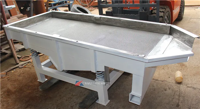 Small vibration mechanical shaker linear vibrating screen sieve is a kind of closed and light weight vibrating sieve equipment, it uses a vibration motor as the vibration source, which make the material jump in straight line on the screen surface, material evenly go into the feed port of linear vibrating screen from the feeding machine, generating multiple materials through the multilayer Small vibration mechanical shaker linear vibrating sieve, and be discharged from each outlets.