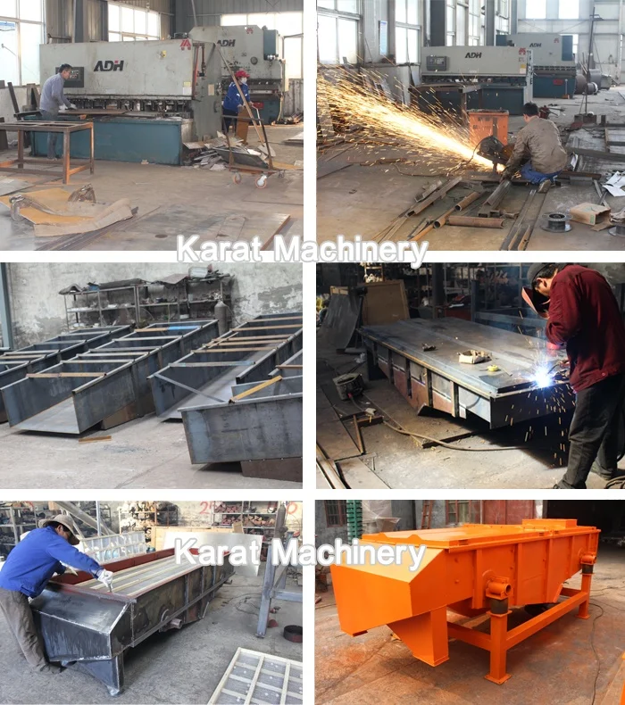 Small vibration mechanical shaker linear vibrating screen sieve is designed by our engineers and produced by workers in our workshop. The following pictures show the procustion process for your reference.