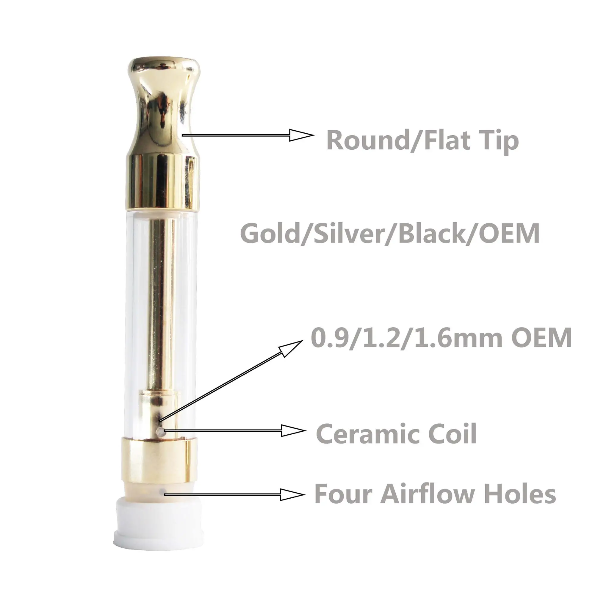 Hot selling Cartridge No Glues CBD Vape Pen Cartridge for CBD Oil 0.5ml Silver Gold