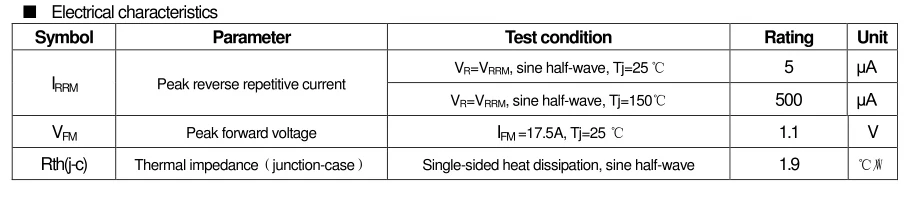 | Thermal impedance(junction-case): | 1.9℃/W; | Brand Name: | YZPST; |