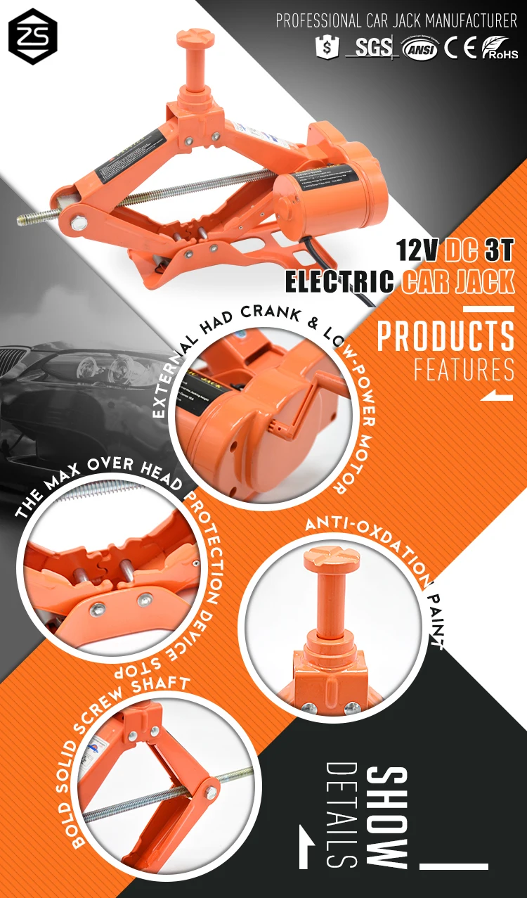 Top design 12 volt electric car scissor jacks and wrench for sale