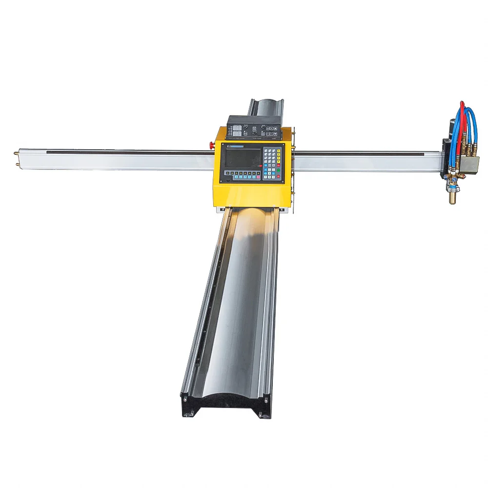 Portable numerical control flame/plasma cutting machines can be programmed to cut any plane shape parts composed of beeline and arc ,which are same as large gantry cutting machines . It is equipped with a 5.7 inch LED with dynamic and static graphical display .It is directly perceived and very easy to learn .It can be programmed to cutting parts directly , and also can be operated in computer translating instructions into a program file by CAD program , and then deducing it via U hardware .The standard positioning of this machine is flame cutting ,external hanging plasma cutter is also workable .
