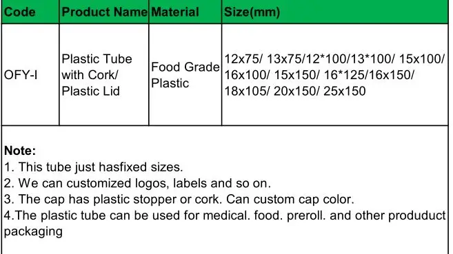 | Brand Name: | OFY; | Product name: | plastic test tube; |