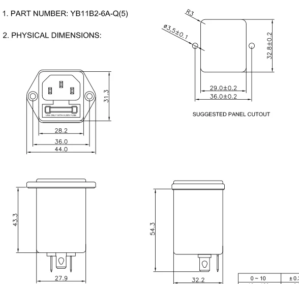 Yanbixin YB11B2 - 3A - Q double fuse inlet ac power line filter,1 - 10A, 5x20mm