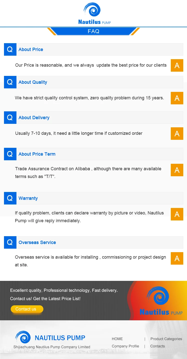 | After-sales Service Provided: | Engineers available to service machinery overseas; | Brand Name: | Nautilus Pump; |