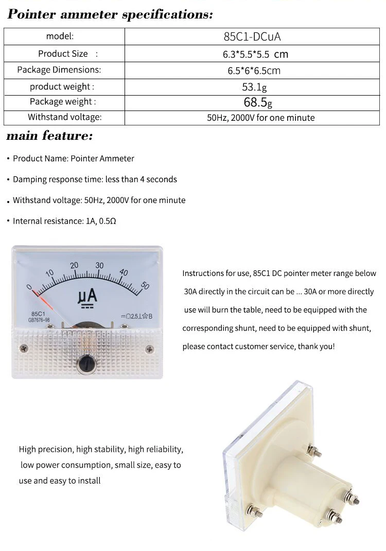 | Single gross weight: | 0.07 KG; | Measuring Range: | 50uA 100uA 200uA 300uA 500uA; |