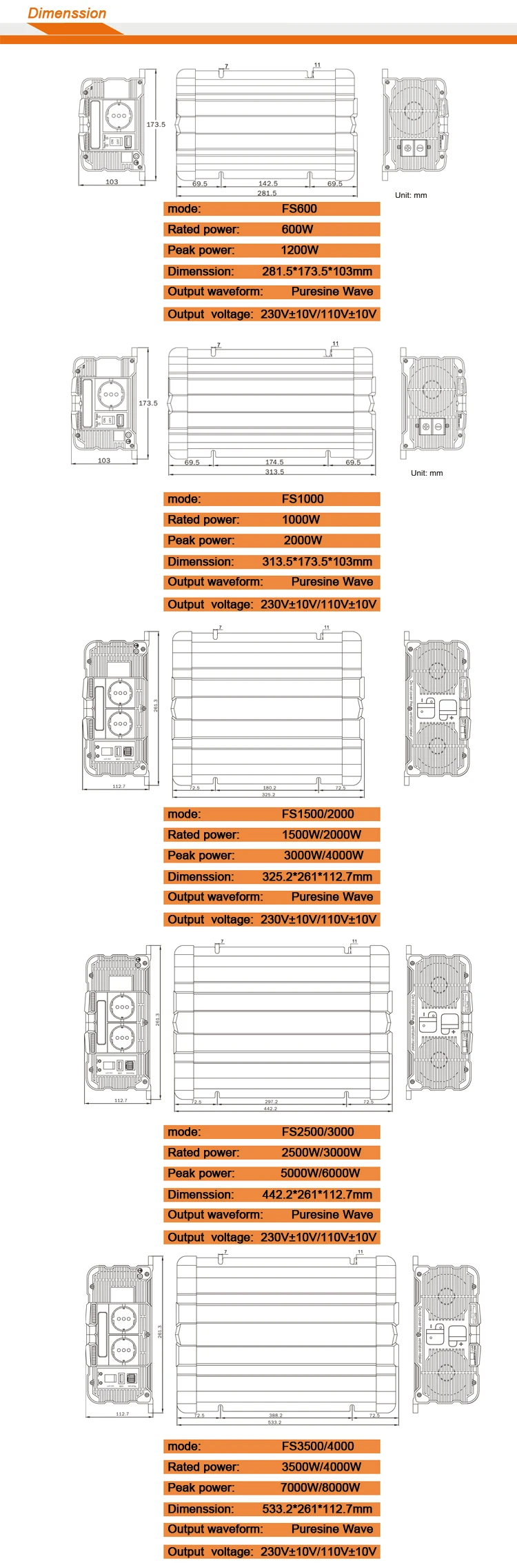 | Others | Dimension(L×W×H) | 281.5*173.6*103.1mm | |||||