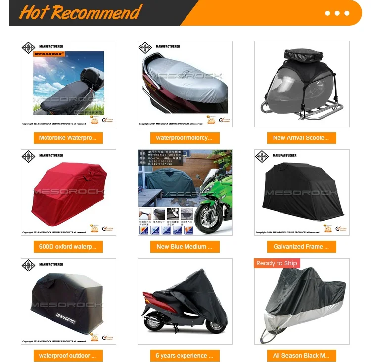 Motorbike Waterproof Seat Saddle CoverMotorbike Waterproof Seat Saddle Coverwaterproof motorcycle scooter seat rain cover protectorwaterproof motorcycle scooter seat rain cover protectorNew Arrival Scooter Motorcycle Elastic Cargo Net Helmet Rope with Storage Bag attachedNew Arrival Scooter Motorcycle Elastic Cargo Net Helmet Rope with Storage Bag attached600D oxford waterproof motorbike shelter600D oxford waterproof motorbike shelterNew Blue Medium Size Folding Waterproof Motor bike Cover Shelter Storage Shed Outdoor Tent GarageNew Blue Medium Size Folding Waterproof Motor bike Cover Shelter Storage Shed Outdoor Tent GarageGalvanized Frame Motor Tent Cover Motor ShelterGalvanized Frame Motor Tent Cover Motor Shelterwaterproof outdoor durable oxford foldable motorbike shelter motorcycle coverwaterproof outdoor durable oxford foldable motorbike shelter motorcycle cover6 years experience in production Oxford Waterproof Deluxe Scooter Cover6 years experience in production Oxford Waterproof Deluxe Scooter CoverAll Season Black Motorbike Cover Waterproof Fits up to 108All Season Black Motorbike Cover Waterproof Fits up to 108