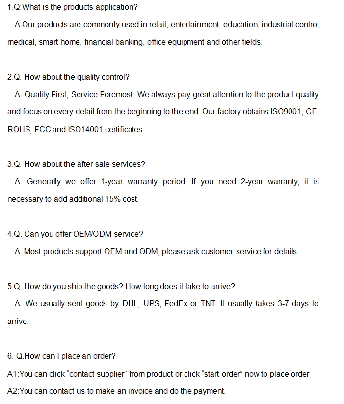| Place of Origin: | Guangdong, China; | Certificates: | ISO9001/CE/FCC/RoHS; |