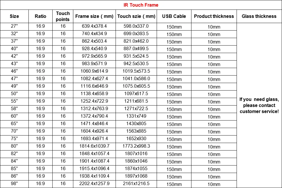 | Touch points: | 16 Points; | Glass material: | without glass; |